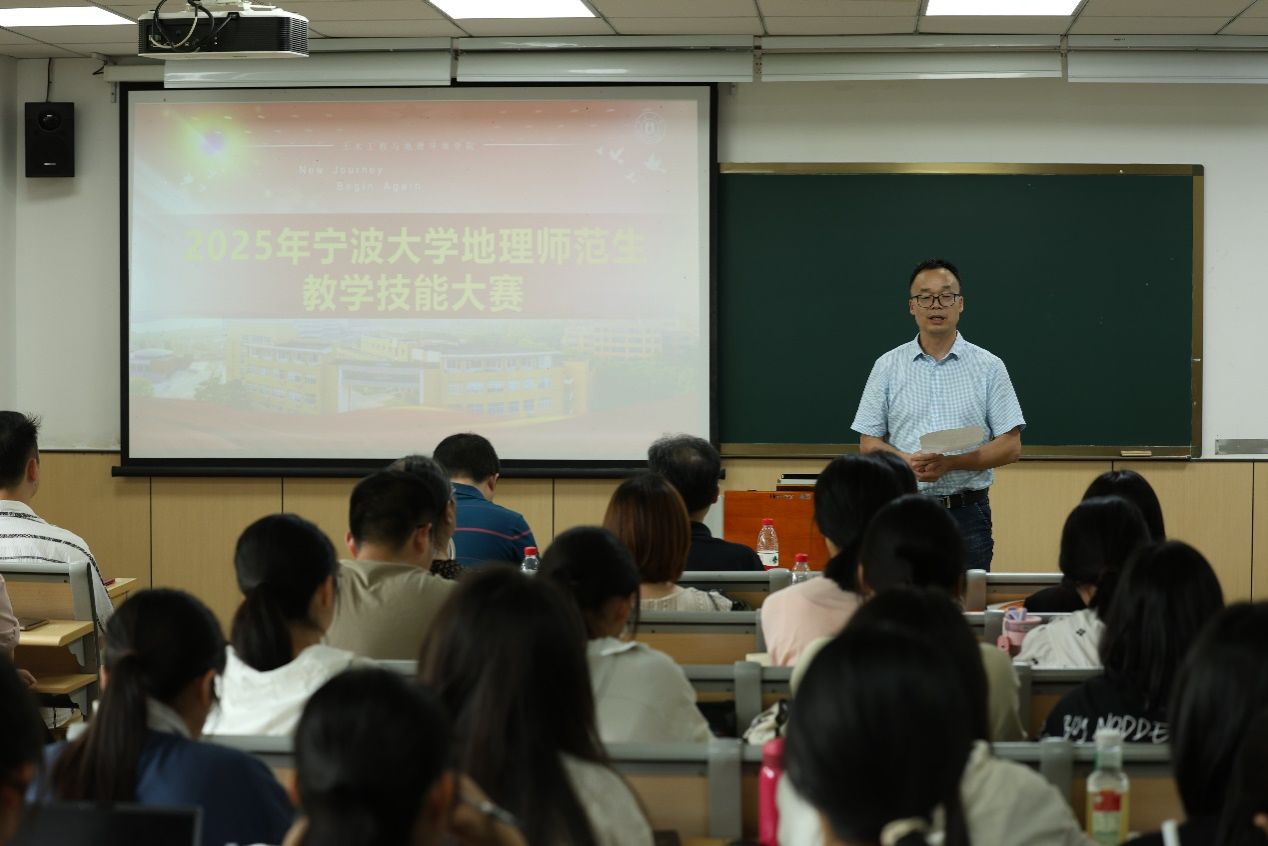 6月7日下午,2025年地理师范教学技能竞赛在本部教学楼六号楼紧锣密鼓地举行,经过预选赛评审选拔出的33名地理师范本科生与7名研究生分为四组同时展开竞赛。学院执行院长、地理科学(师范)专业负责人李加林介绍了来自宁波市中学地理教师发展学校联盟的9位一线专家,并期待参赛选手赛出风格、赛出水平。
