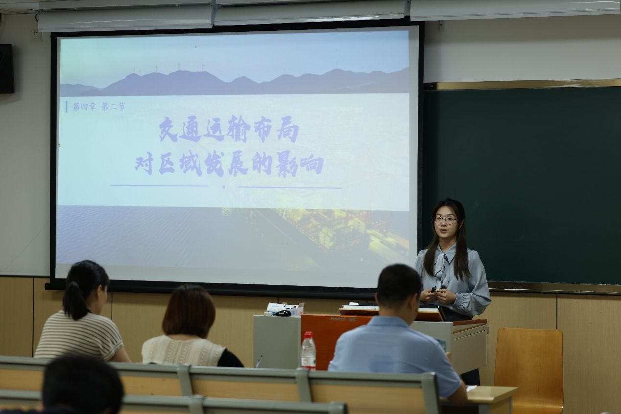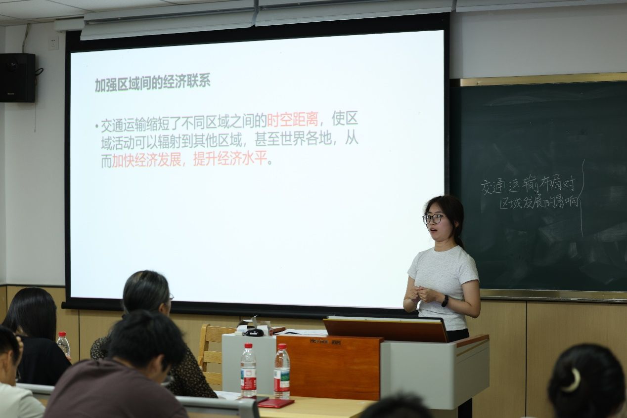 杨磊老师首先从板图绘制与板书逻辑角度评析了11位参赛选手的讲课表现;此外,就提问的有效性角度,强调了师生互动时对答案的预设准备与对学生回答的巧妙应对的重要性;吴巧红老师分析了情境设置与导入安排在课程设计中的亮点;来自初中的龚瑾老师以初中学情分享了“如何将地理讲得有趣”的方式,以及为抽象术语给予具象表达的意义,为参赛同学新的授课视角。