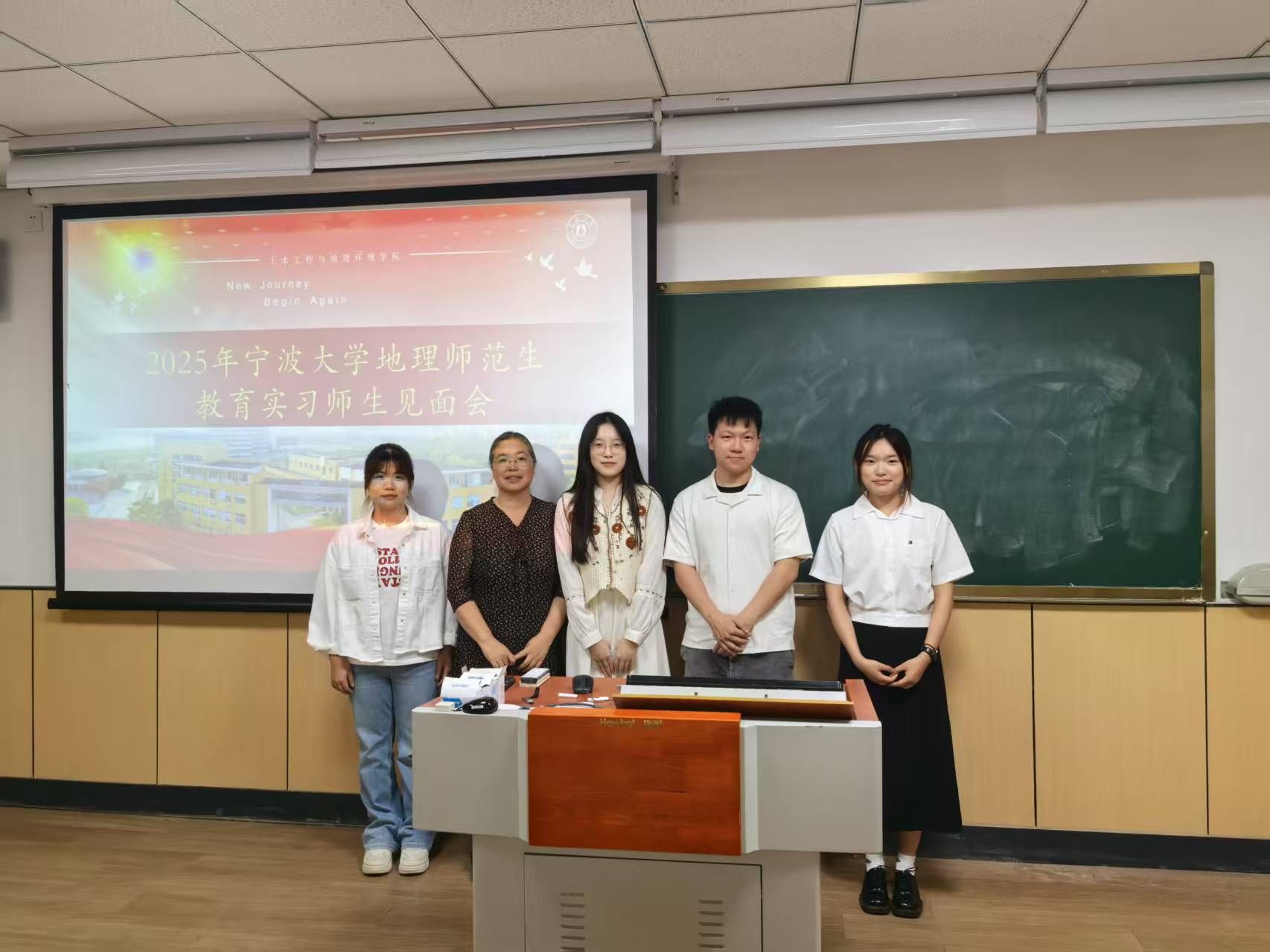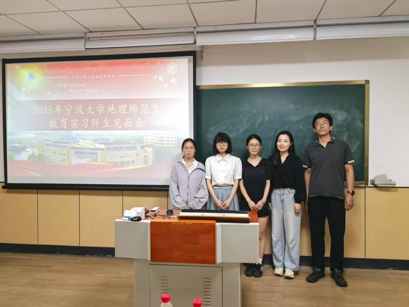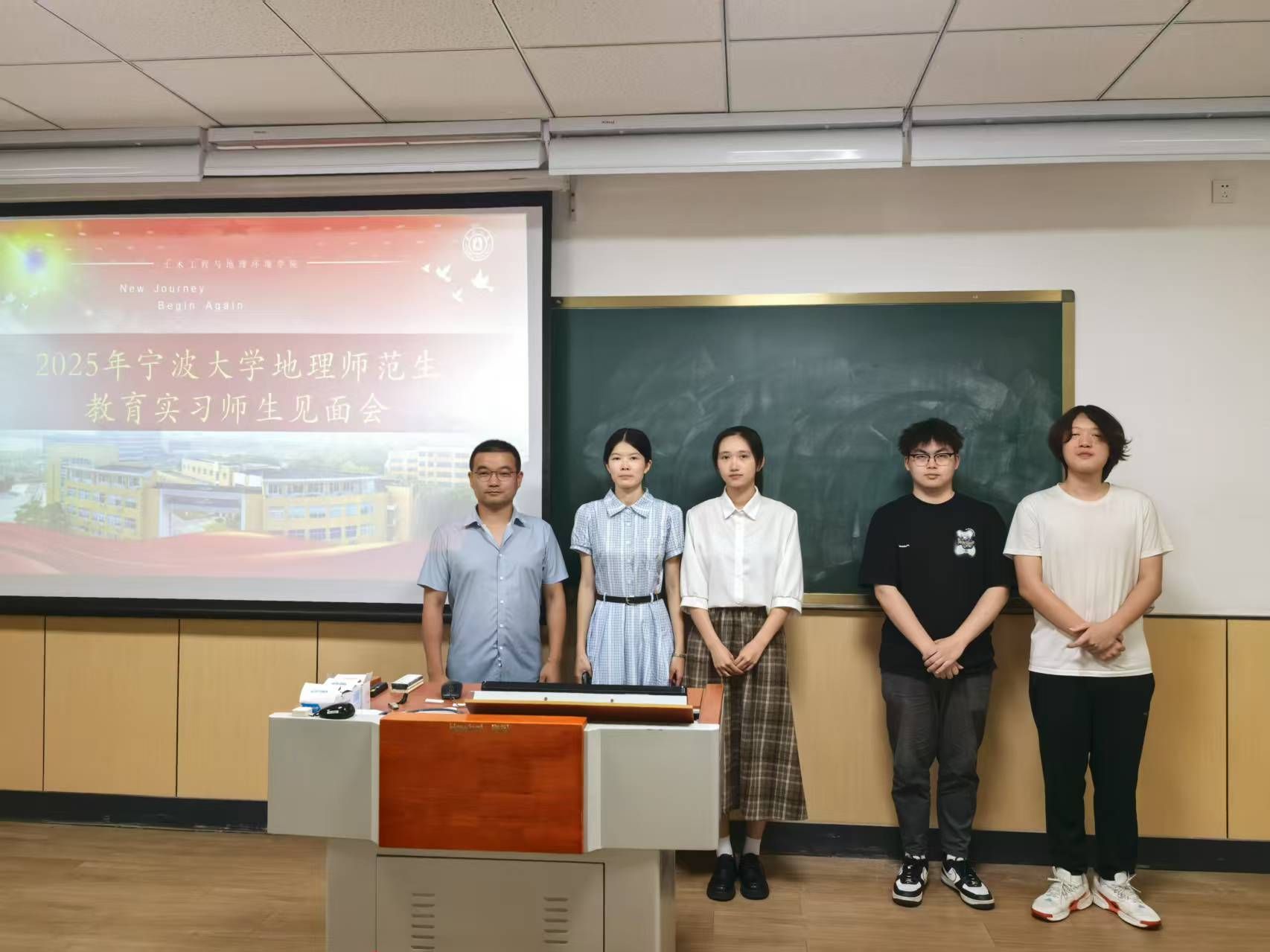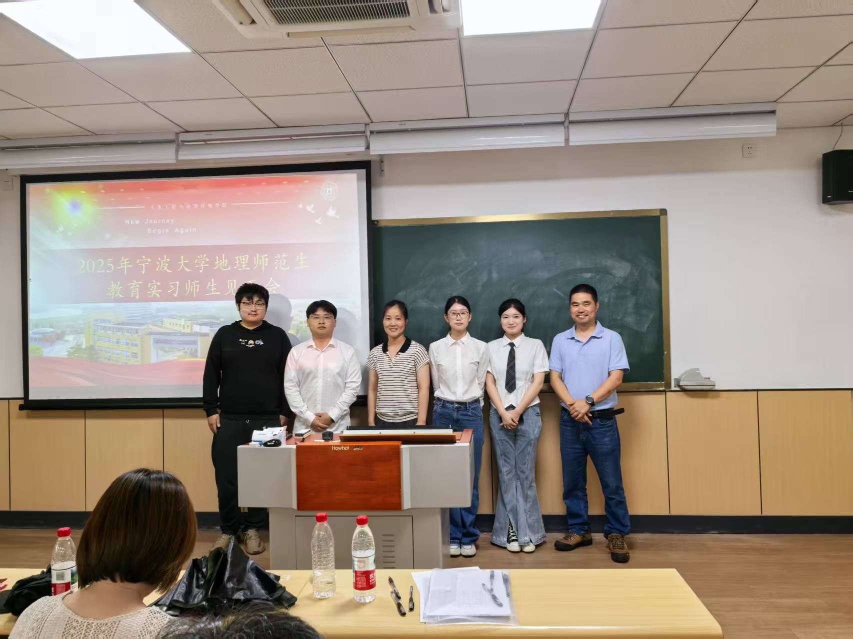 师范生技能大赛圆满落幕后,全体22级地理科学(师范)生们迎来了与下学期教育实习学校老师们的第一次见面会。在这次见面会上,实习学校的老师们不仅对我们未来的到来表示了热烈的欢迎,而且与各实习小队都进行了合影。通过这次师范生技能大赛与见面会,我们感受到了实习学校老师们的热情与专业,相信在下个学期的实习日子里,我们一定能够在实习学校老师们的指导下,不断提升自己的教育教学能力,为将来成为一名优秀的地理教师打下坚实的基础。