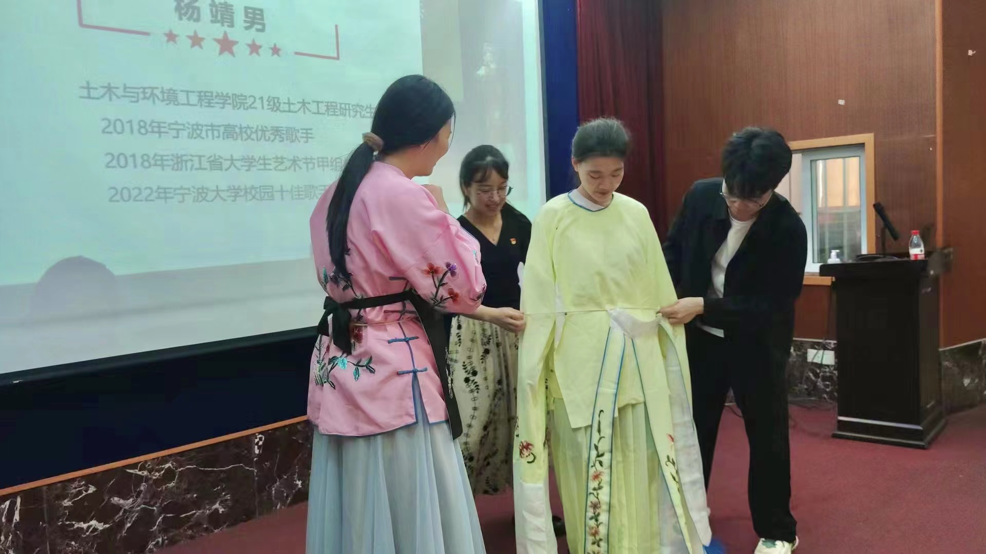 宣誓完毕后,学院党委、纪委委员为预备党员送上了“手作工艺粽”作为伴手礼,寓意“心‘粽’有党”。随后, 21级土木工程研究生、校园十佳歌手冠军杨靖男现场为大家演唱了京剧样板戏《红灯记》,生动再现了抗日战争时期的革命故事,并通过现场展示戏曲服装、台词表演等形式,将党史学习教育融入戏曲之中,引领在场师生共同感受传统戏曲艺术的独特魅力,深入体悟红色精神。