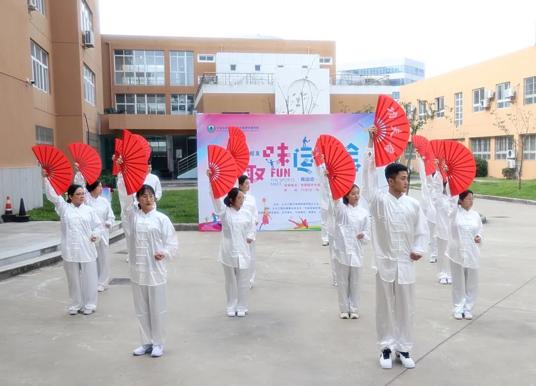 活动开始,由学院教职工代表组成的功夫扇展演团队进行了趣味运动会开幕式展演。配合着舒缓的音乐,老师们优雅的身姿、整齐的动作,无不展现出刚柔之美、神韵之美、和谐之美。