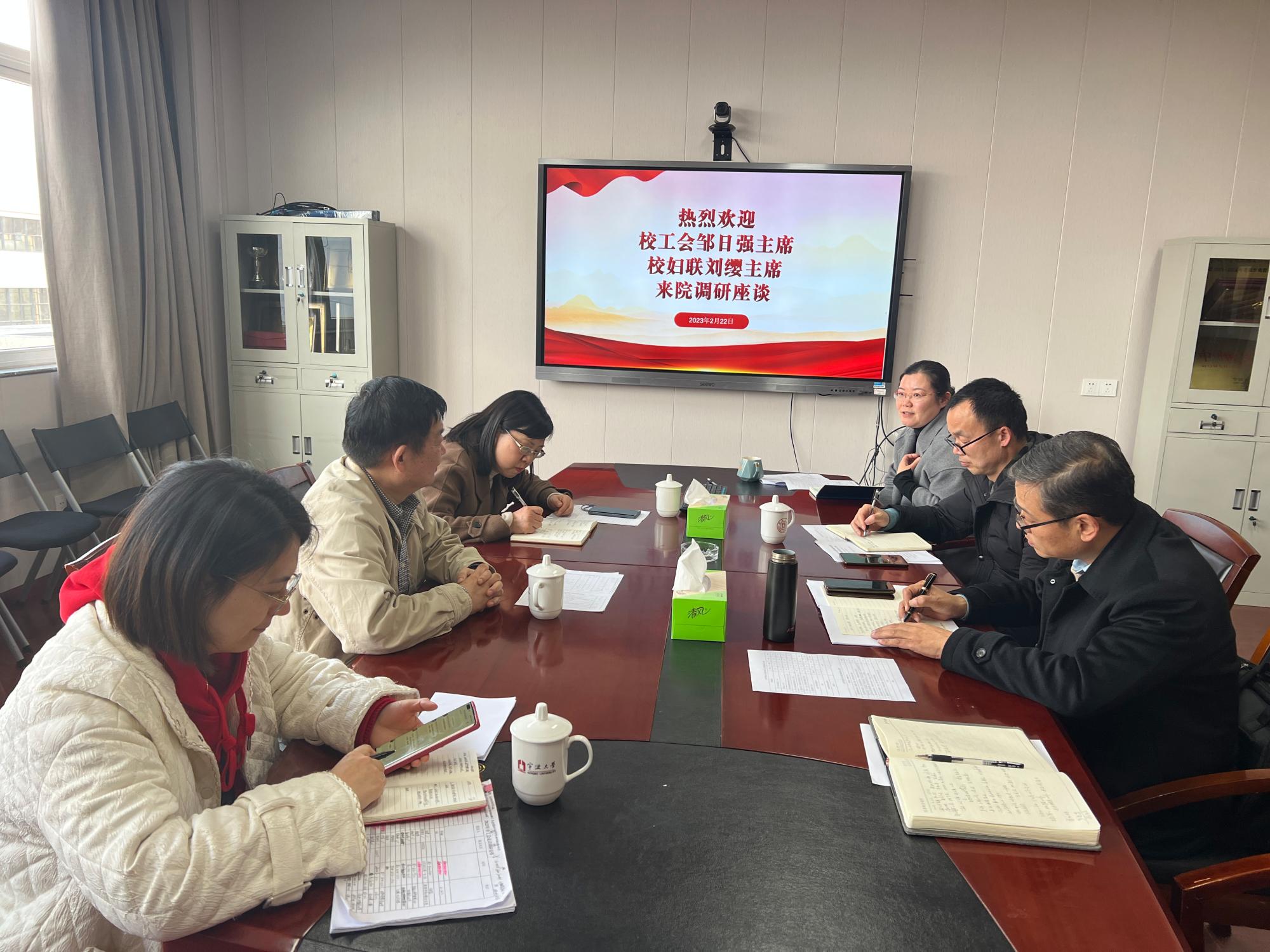 2月22日下午,校工会主席邹日强、妇联主席刘缨等一行到吃瓜网 调研。学院党委书记李加林、副书记朱剑琼、分工会主席严晓东等参加座谈。