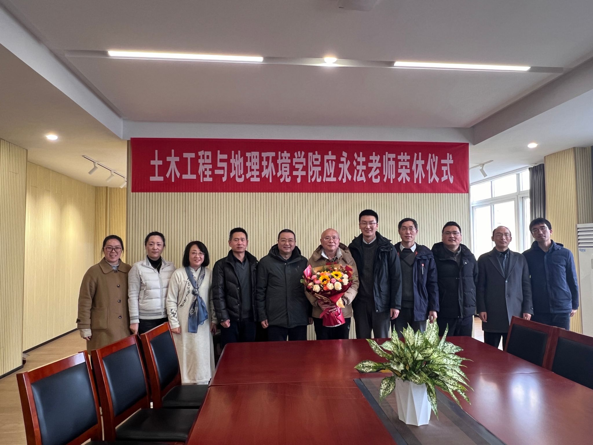 此次荣休仪式在学院A408举行,仪式由学院副院长章子华主持、分工会主席叶春阳以及土木系教师代表共同见证了这一重要时刻,整个现场洋溢着对应老师的深厚情感和美好祝愿。仪式伊始,章子华副院长回顾了应永法老师在学校工作期间的点点滴滴。随后,分工会主席叶春阳向应老师敬献了鲜花及证书,以此表达对应老师的感激与敬意。